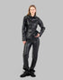 TAILORED JACKET MADE OF A LEATHER-EFFECT FABRIC WITH A SMOOTH, POLISHED FINISH. FEATURING A CLEAN STAND COLLAR AND FRONT BUTTON FASTENING. FITTED SILHOUETTE WITH SHAPED SEAMS FOR A FLATTERING STRUCTURE. LONG SLEEVES AND A MINIMAL HEM COMPLETE THE DESIGN, MAKING IT A VERSATILE PIECE FOR MODERN, ELEVATED STYLING.