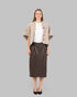 تنورة ميدي من الجلد الصناعي بتصميم خصر عالٍ وقصة مستقيمة، بلمسة نهائية ناعمة وتفاصيل خياطة دقيقة، وسحاب جانبي مخفي، وفتحة أمامية عند الحافة، وبطانة متناسقة.